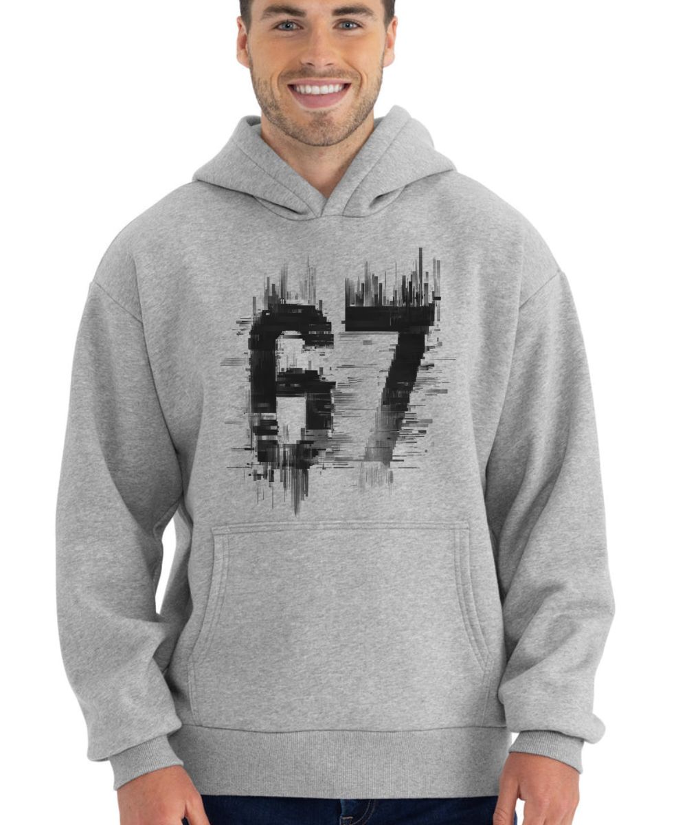 Six Seven, Glitch, černý tisk. Futuristická verze “Six Seven” stylizovaná jako digitální chyba (glitch) v kruhu.