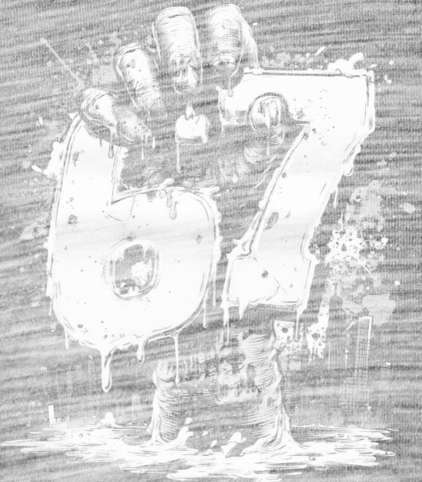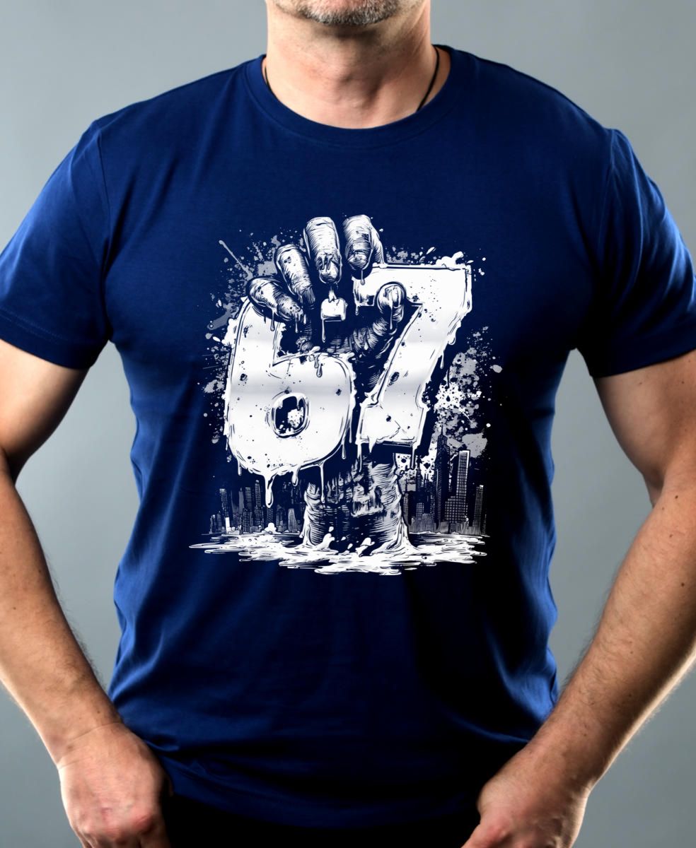 Six Seven, Graffiti Hand, bílý tisk. Temný a stylový motiv “Six Seven” držený rukou vynořující se z vody. Tričko, mikina, kšiltovka, zástěra, tílko.