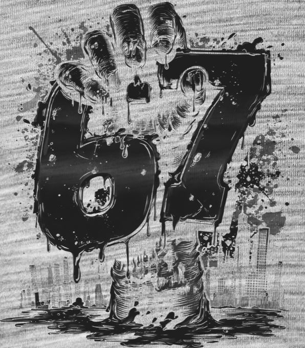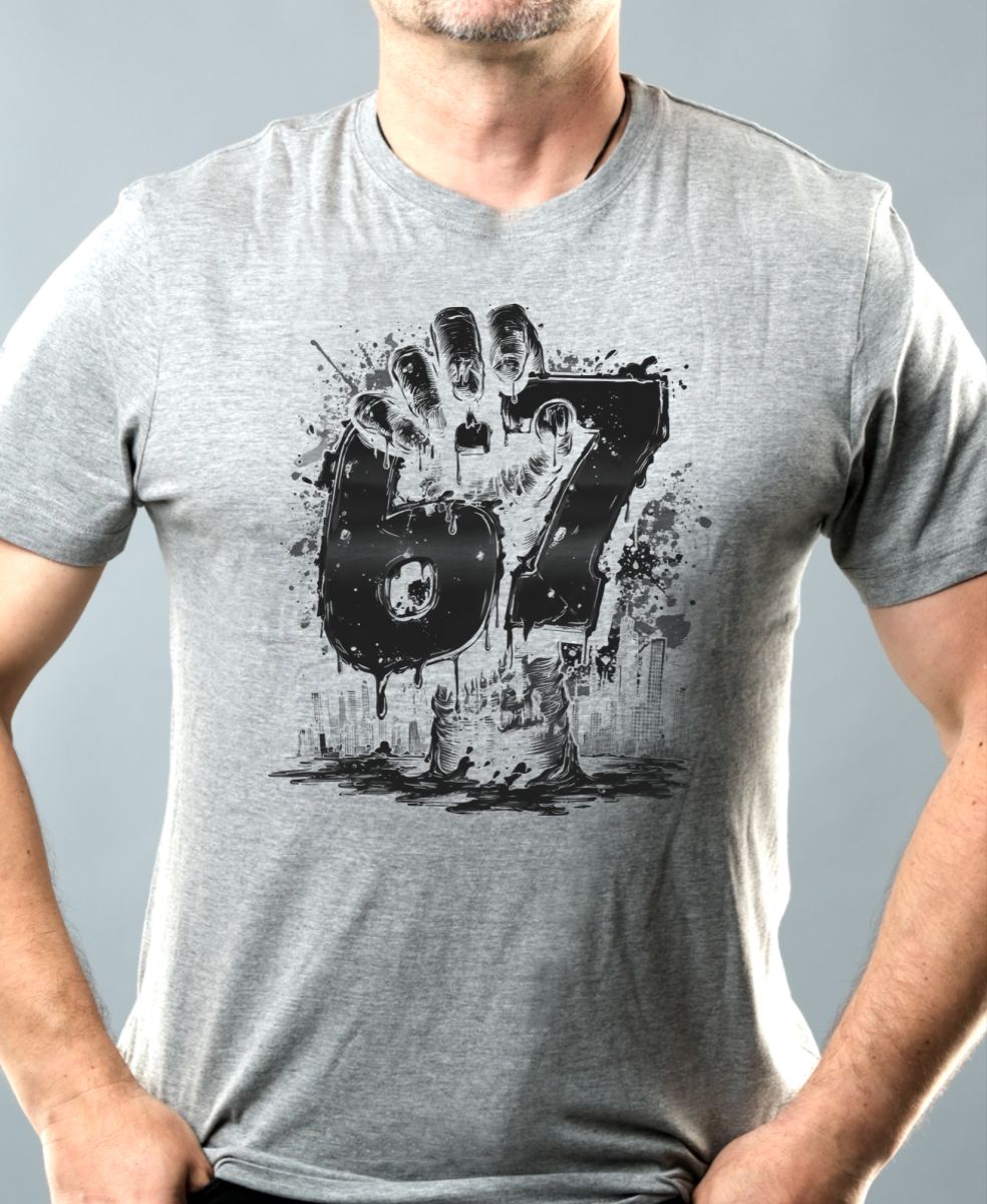 Six Seven, Graffiti Hand, černý tisk. Temný a stylový motiv “Six Seven”, držený rukou vynořující se z vody. Tričko, mikina, kšiltovka, zástěra, tílko, hrnek, půllitr, plechový hrneček