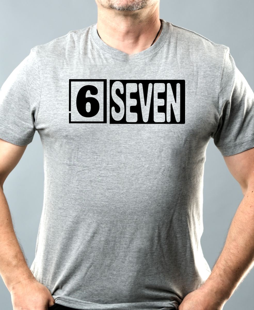 Six Seven, logo, černý tisk. Minimalistické provedení kultovního nápisu “6 SEVEN” v rámečku. Čistý typografický styl pro ty, kteří chtějí nosit tento virální trend decentně a bez křiklavých barev. Tričko, mikina, kšiltovka, zástěra, tílko, hrnek, půllitr, plechový hrneček