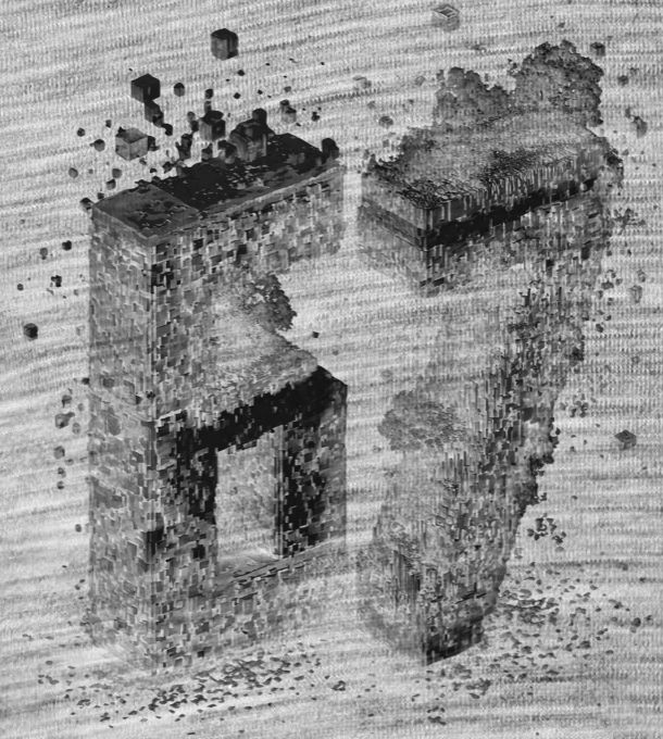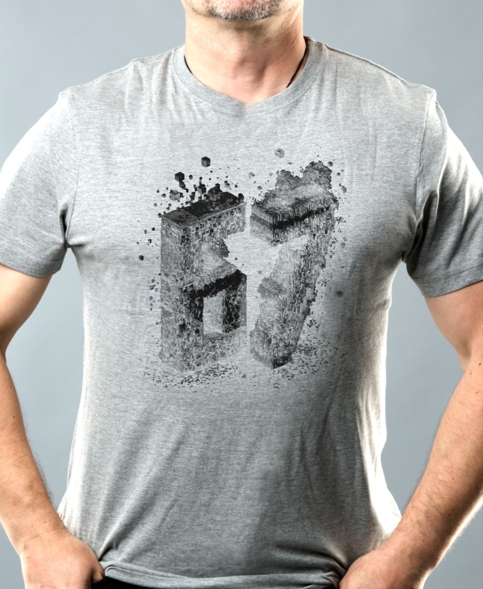 Six Seven, Nature, černý tisk. Detailní voxel art zobrazující číslo 67 jako kvetoucí ostrov složený z kostiček hlíny a trávy. Ideální propojení virálního meme “Six Seven” s oblíbeným stavitelským stylem videoher. Tričko, mikina, kšiltovka, zástěra, tílko, hrnek, půllitr, plechový hrneček