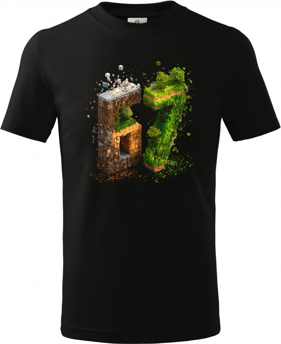 Six Seven, Nature. Detailní voxel art zobrazující číslo 67 jako kvetoucí ostrov složený z kostiček hlíny a trávy. Ideální propojení virálního meme “Six Seven” s oblíbeným stavitelským stylem videoher.