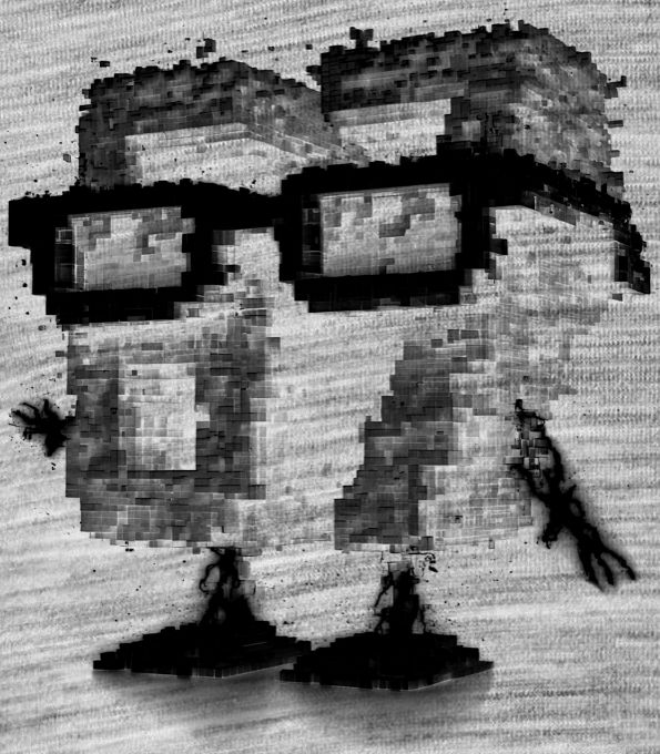 Six Seven, Pixel Character, černý tisk. Virální číslo 67 jako kráčející pixelová postavička se slunečními brýlemi. Tričko, mikina, kšiltovka, zástěra, tílko, hrnek, půllitr, plechový hrneček