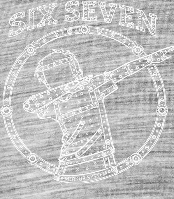 Six Seven, stavebnice, bílý tisk. Originální spojení taneční figury dab s legendární kovovou stavebnicí Merkur. Postava složená z děrovaných pásků a šroubků potěší malé stavitele i fanoušky technického retro stylu. Tričko, mikina, kšiltovka, zástěra, tílko.