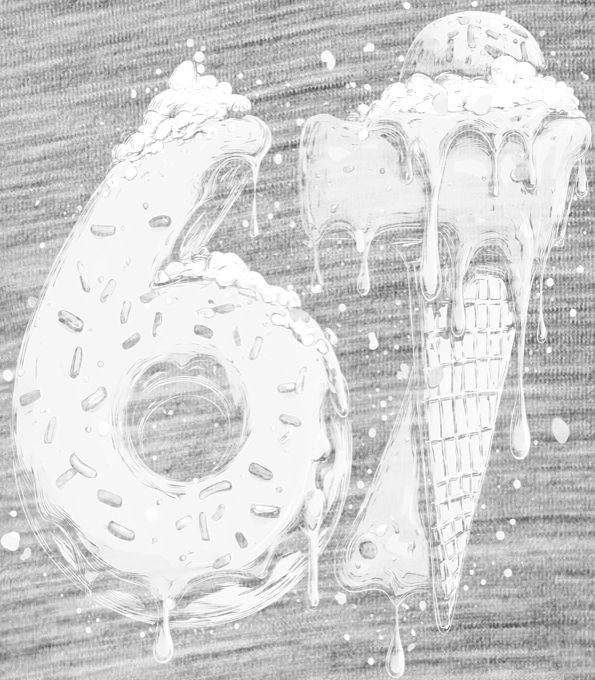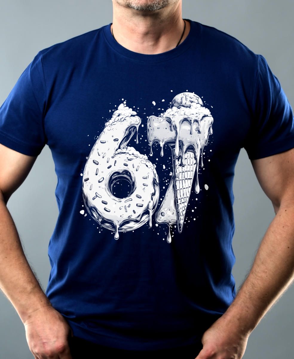 Six Seven, Sweets, bílý tisk. Sladká varianta virálního trendu, kde je šestka donutem a sedmička zmrzlinou. Tričko, mikina, kšiltovka, zástěra, tílko.
