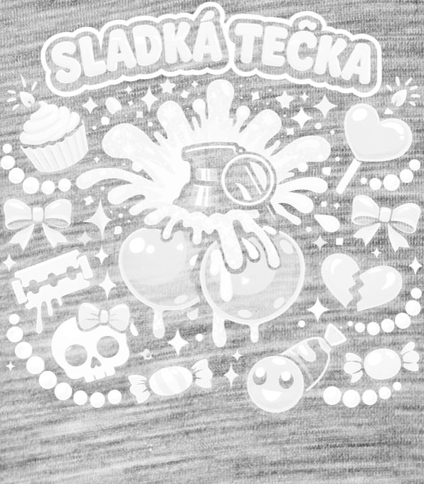 Sladká tečka, bílý potisk. Exploze sladkostí a nebezpečí v jednom motivu, kterému dominuje granát v polevě s třešinkou. Perfektní volba pro rebelky, které chtějí ukázat svou sladkou i divokou stránku najednou. Tričko, tílko, mikina, kšiltovka, zástěra.