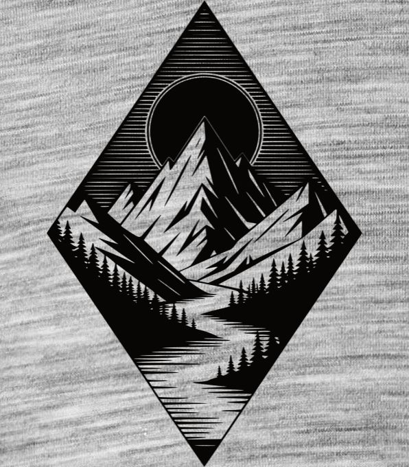 Slunce v horách, černý potisk. Krásný design pro všechny, kteří rádi tráví čas v horách.