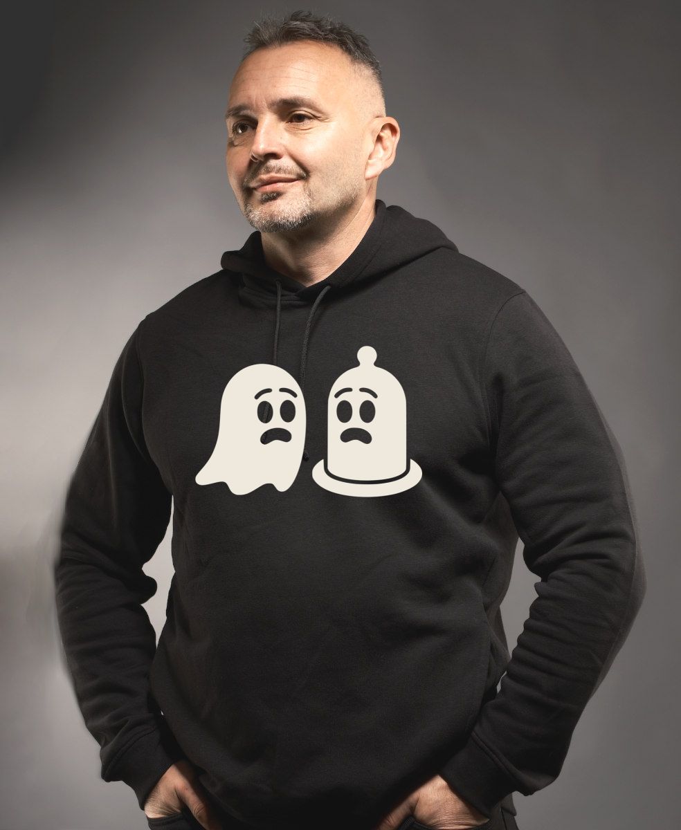 Spřízněné duše, bílý tisk. Občas najdeš svého dvojníka tam, kde bys to nejméně čekal! Minimalistický a lehce absurdní design pro všechny, kteří se nebojí trochu provokovat a mají rádi suchý humor. Dvě naprosto nesouvisející věci spojené nečekanou tvarovou podobností a stejným vyjukaným výrazem. Tričko, mikina, kšiltovka, zástěra, tílko.