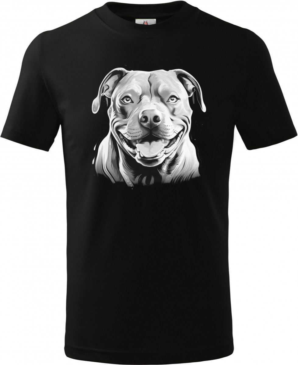 Stafordšírský bulteriér, bílý tisk na tričku na mikině nebo zástěře? Ideální dárek pro děti, mámu, tátu, babičku i dědu. Tričko, mikina, kšiltovka, zástěra, tílko.
