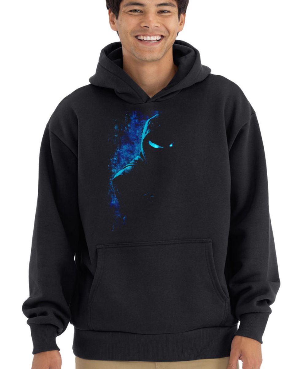 Stínový lovec. Tajemná silueta s pronikavě modře zářícíma očima a dynamickou aurou vytváří dojem skryté síly a tajemství. Motiv plný energie a mystiky, ideální pro ty, kdo oceňují temnější a abstraktní vizuály. Vítejte ve světě, kde stíny ožívají.