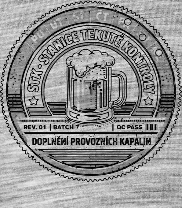 STK, stanice tekuté kontroly, černý potisk. Geniální parodie na kontrolní nálepku pro všechny, kterým občas dojde šťáva. Vtipný motiv s půllitrem a nápisy „STK – Stanice tekuté kontroly“ a „Doplnění provozních kapalin“ jasně hlásí, že je čas na pauzu na jedno točené. Ať už tě čeká vyprahlá letní krajina na festivalu, nebo jen páteční večer v oblíbené hospodě, s tímhle trikem bude hned jasné, jaké palivo zrovna potřebuješ natankovat.