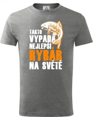 Tak vypadá nejlepší rybář na světě. Bílý a oranžový tisk.
