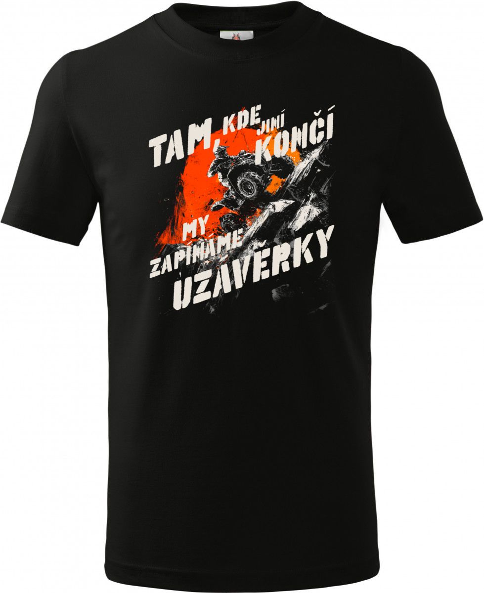 Tam, kde jiní končí, my zapínáme uzávěrky. Čtyřkolky, ATV, QUAD. Pro ty, co se neztratí a nerozhází je žádný terén!  Tričko, mikina, kšiltovka, zástěra, hrnek, půllitr, plecháček