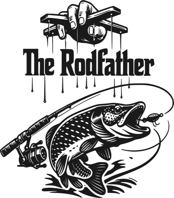 The Rodfather, V1, černý potisk. Geniální parodie na legendární film Kmotr, tentokrát ale pro skutečné vládce vod. Design kombinuje ikonickou ruku loutkáře, rybářský prut a vyskakující dravou rybu. Výstižný nápis „The Rodfather“ jasně ukazuje, kdo dává rybám nabídky, které nelze odmítnout. Dokonalý a vtipný dárek pro každého vášnivého rybáře, který má u vody hlavní slovo. Tričko, mikina, kšiltovka, zástěra, tílko, hrnek, půllitr, plechový hrneček.