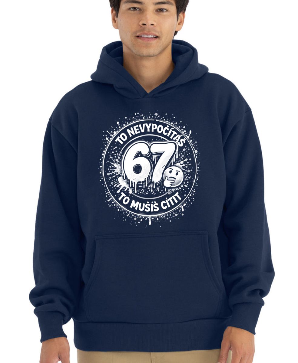 To nevypočítáš, six seven, bílý tisk. Výrazný design s číslem 67 a vtipnou hláškou „To nevypočítáš, to musíš cítit“. Energický motiv s efektem slizu a přemýšlivým smajlíkem. Tričko, mikina, kšiltovka, zástěra, tílko.