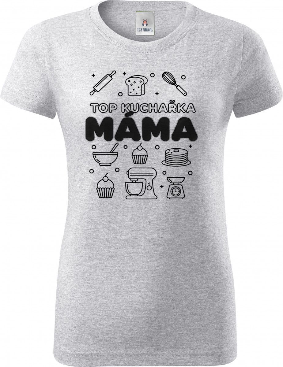 Top kuchařka máma, černý potisk. Od nadýchaných muffinů až po ty nejlepší lívance pod sluncem – tohle tričko patří královně kuchyně. Ideální outfit pro každou mámu, která dokáže vykouzlit hostinu i z ničeho.