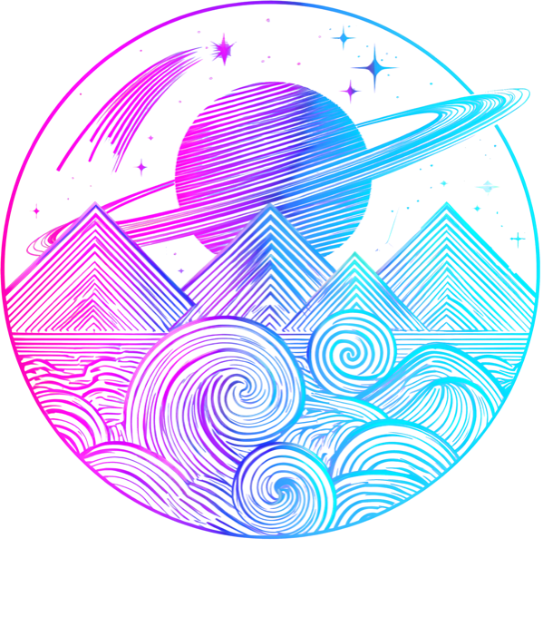 Vesmírná krajina. Nádherný line art motiv, který tě okamžitě přenese do jiných světů. Magická mimozemská krajina tvořená stylizovanými vlnami a horskými štíty, nad kterými se tyčí obrovská prstencová planeta a padající hvězda. Celý kruhový design je vyveden v úžasném neonovém gradientu od růžové po tyrkysovou. Perfektní a stylový kousek pro všechny snílky, milovníky vesmíru a synthwave estetiky. Tričko, tílko, mikina, kšiltovka, zástěra, hrnek, plechový hrnek, termoska, půllitr, kraťasy, polštář.