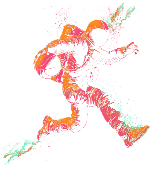 Vesmírný basket, V1. Unikátní série motivů propojující vášeň pro basketbal s nekonečnou fantazií vesmíru. Tričko, mikina, kšiltovka, zástěra, tílko, hrnek, půllitr, plechový hrneček.