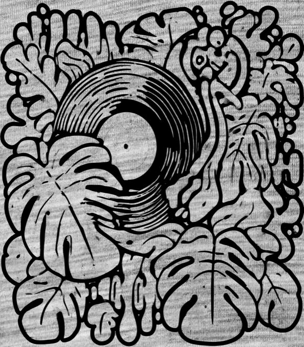 Vinylová džungle, černý tisk. Nádherný abstraktní kousek pro všechny milovníky starých dobrých časů a hudby z gramofonu. Naprosto perfektní a stylová volba pro dýdžeje, sběratele desek a fanoušky hudebního vintage designu. Tričko, tílko, mikina, kšiltovka, zástěra, hrnek, hrneček, půllitr, plechový hrnek