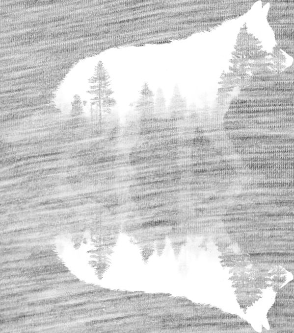 Vlk, lesní odraz, bílý potisk. Atmosférický design, který v sobě nese klid i divokost přírody. Silueta kráčejícího vlka, ve které se vykresluje hustý les při západu slunce, se zrcadlí na vodní hladině. Decentní, a přitom vizuálně silný motiv pro všechny milovníky hor, lesů a svobody. Perfektní kousek, který kombinuje zvířecí motiv s uměleckou krajinou.