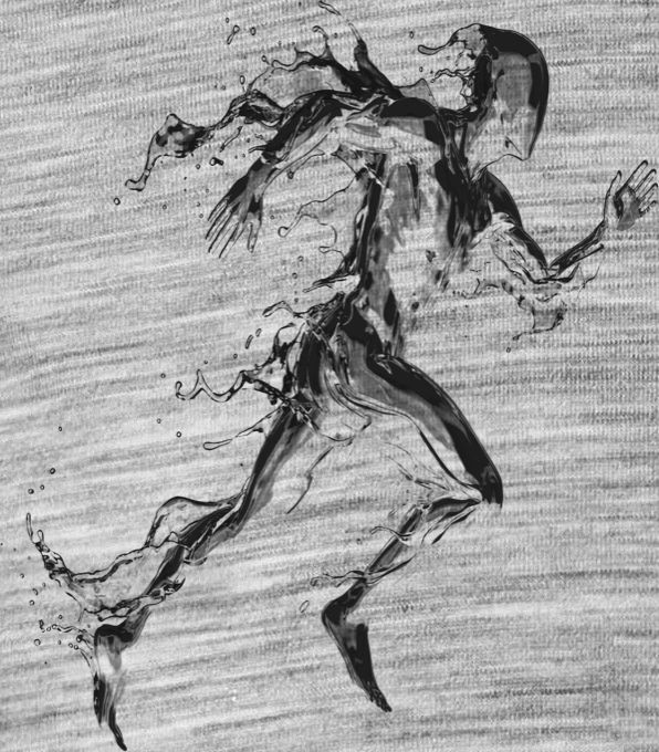 Vodní běžec, černý potisk. Dynamický design nabitý čistou energií a rychlostí. Motiv zobrazuje futuristickou postavu běžce tvořenou tekutým kovem a stříkající vodou v azurových odstínech. Skvělý kousek pro sportovce, nadšené běžce nebo fanoušky sci-fi, kteří chtějí ukázat, že jsou neustále v pohybu a nezastaví se před žádnou překážkou.