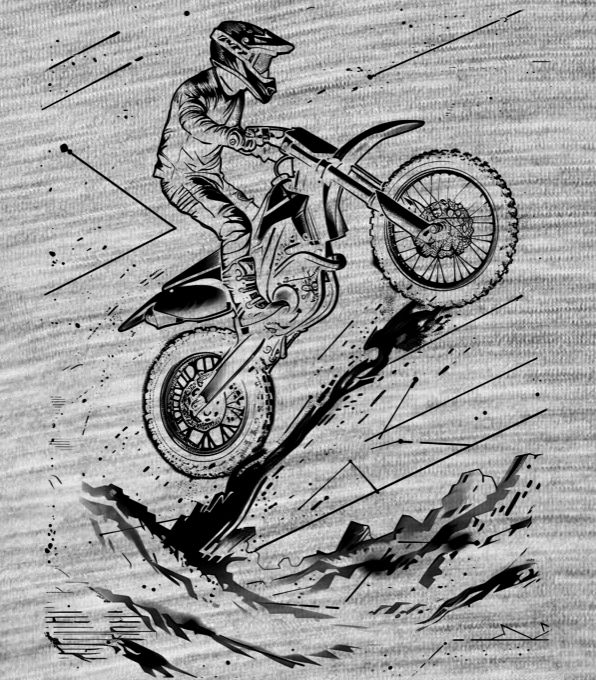 Vzlet terénem, černý tisk. Vzhůru k nebesům! Energický motiv pro ty, co se nebojí skočit do neznáma a ukázat, kdo vládne vzdušnému prostoru.
