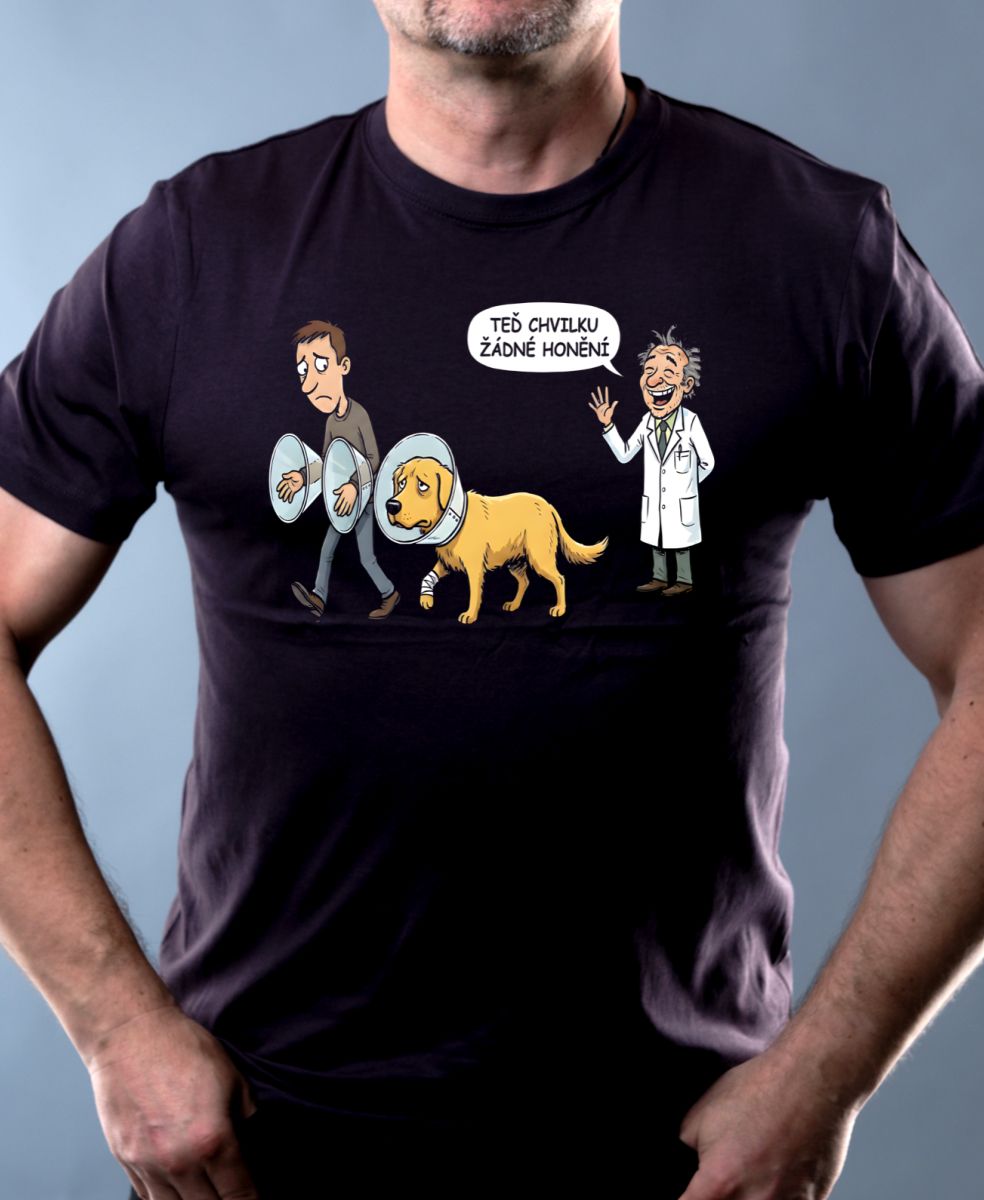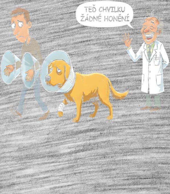Žádné honění. Drsnější kreslený humor ze života pejskařů a jejich mazlíčků po návštěvě veteriny. Tento motiv s vtipnou pointou zaručeně pobaví každého majitele psa se smyslem pro černý humor.