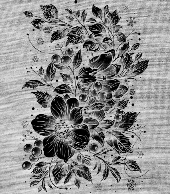 Zimní květinová fantazie, černý potisk. Když mráz políbí květy, vznikne tahle ledová krása. Botanická ilustrace s nádechem zimy a pohádkové křehkosti. Připomeň si, že i v chladném období se dá najít elegance a jemná krása.