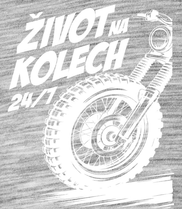 Život na kolech 24/7, bílý tisk. Svoboda na dvou kolech je celodenní záležitost. Ideální pro benzín ve vašich žilách.