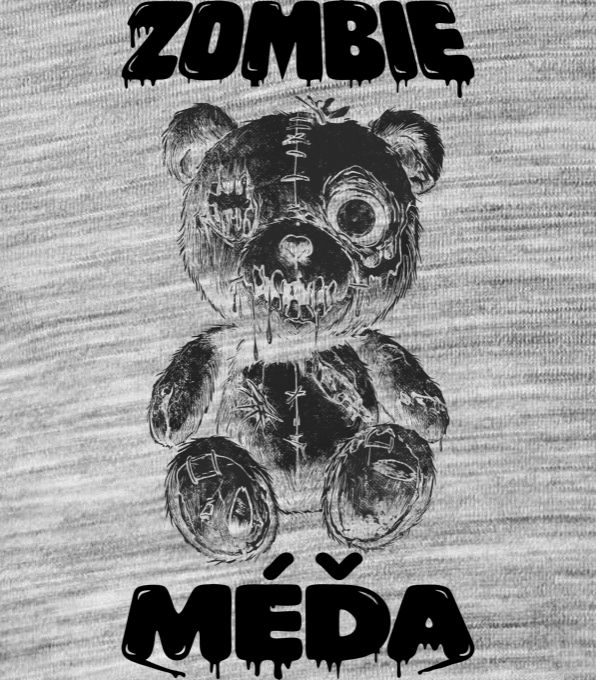 Zombie méďa, černý potisk. I plyšáci mají duši… a hlad! Perfektní pro fanoušky hororů a černého humoru.